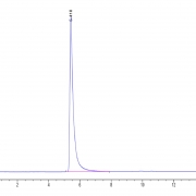 The protein has a predicted MW of 75.9 kDa. Due to glycosylation, the protein migrates to 120-140 kDa based on Tris-Bis PAGE result.
