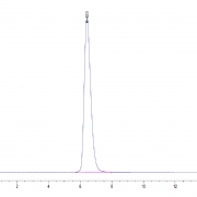 The protein has a predicted MW of 41.6 kDa. Due to glycosylation, the protein migrates to 50-70 kDa based on Tris-Bis PAGE result.