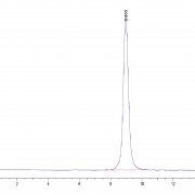The protein has a predicted MW of 16.7 kDa. Due to glycosylation, the protein migrates to 40-60 kDa based on Tris-Bis PAGE result.