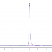 The protein has a predicted MW of 58.97 kDa. Due to glycosylation, the protein migrates to 60-65 kDa based on Tris-Bis PAGE result.