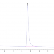 The protein has a predicted MW of 21.65 kDa. Due to glycosylation, the protein migrates to 27-35 kDa based on Tris-Bis PAGE result.