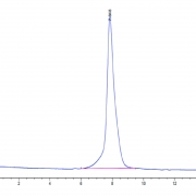 The protein has a predicted MW of 57.25 kDa. Due to glycosylation, the protein migrates to 70-100 kDa based on Tris-Bis PAGE result.