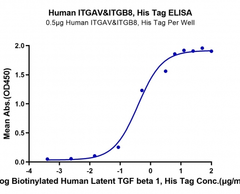 Human Integrin alpha V beta 8 (ITGAV&ITGB8) Heterodimer Protein,P06756,Phe31-Val992(ITGAV) acidic tail & Glu43-Arg684(ITGB8) basic tail
