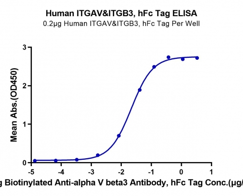 Human Integrin alpha V beta 3 (ITGAV&ITGB3) Heterodimer Protein,P06756,Phe31-Val992(ITGAV)acidic tail & Gly27-Asp718(ITGB3)basic tail
