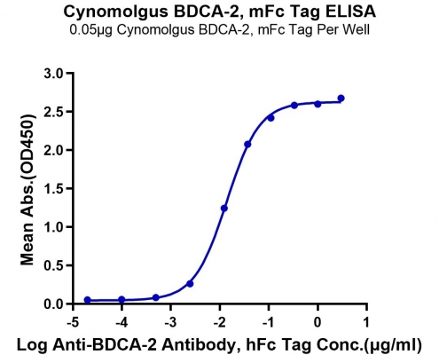 Cynomolgus BDCA-2 Protein,A0A2K5UWP4,Tyr48-Ile212
