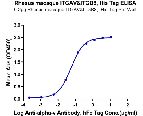 Rhesus macaque Integrin alpha V beta 8 (ITGAV&ITGB8) Heterodimer Protein,F6QSK2(ITGAV)&F7F3K9(ITGB8),Phe31-Pro993(ITGAV)acidic tail & Glu43-Ser681(ITGB8)basic tail