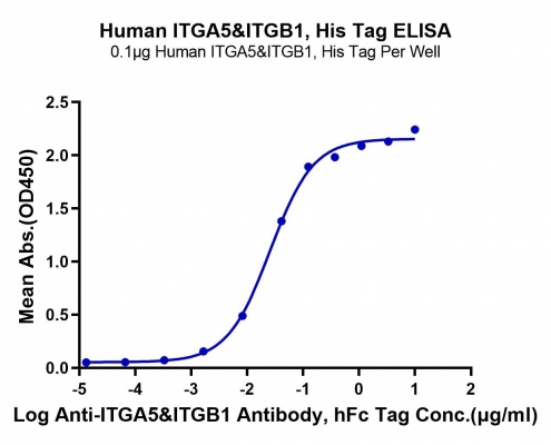 Human Integrin alpha 5 beta 1 (ITGA5&ITGB1) Heterodimer Protein,P08648(ITGA5)&P05556,Phe42-Tyr995(ITGA5)acidic tail & Gln21-Asp728(ITGB1)basic tail