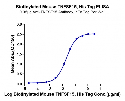 Biotinylated Mouse TNFSF15 Protein,Q5UBV8,Ala61-Leu252
