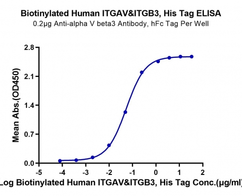Biotinylated Human Integrin alpha V beta 3 (ITGAV&ITGB3) Heterodimer Protein,P06756,Phe31-Val992(ITGAV)acidic tail & Gly27-Asp718(ITGB3)basic tail