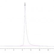 The protein has a predicted MW of 25.76 kDa. Due to glycosylation, the protein migrates to 30-40 kDa based on Tris-Bis PAGE result.