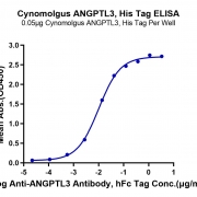 Immobilized Cynomolgus ANGPTL3, His Tag at 0.5ug/ml (100ul/well) on the plate. Dose response curve for Anti-ANGPTL3 Antibody, hFc Tag with the EC50 of 10.1ng/ml determined by ELISA. See testing image for detail.