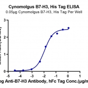 Immobilized Cynomolgus B7-H3, His Tag at 0.5ug/ml (100ul/Well) on the plate. Dose response curve for Anti-B7-H3 Antibody, hFc Tag with the EC50 of 11.4ng/ml determined by ELISA. See testing image for detail.