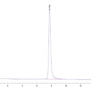 The protein has a predicted MW of 57.42 kDa. Due to glycosylation, the protein migrates to 70-80 kDa based on Tris-Bis PAGE result.