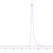 The protein has a predicted MW of 80.69 kDa. Due to glycosylation, the protein migrates to 81-110 kDa based on Tris-Bis PAGE result.