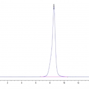 The protein has a predicted MW of 30.96 kDa. Due to glycosylation, the protein migrates to 50-70 kDa based on Tris-Bis PAGE result.