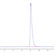 The protein has a predicted MW of 18.73 kDa. Due to glycosylation, the protein migrates to 45-50 kDa based on Tris-Bis PAGE result.