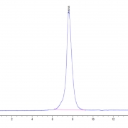 The protein has a predicted MW of 65.30 kDa. Due to glycosylation, the protein migrates to 95-115 kDa based on Tris-Bis PAGE result.
