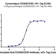 Immobilized Cynomolgus CD3E&CD3D, hFc Tag at 0.5ug/ml (100ul/Well). Dose response curve for Biotinylated Anti-CD3E&CD3D Antibody, mFc Tag with EC50 of 13.9ng/ml determined by ELISA. See testing image for detail.