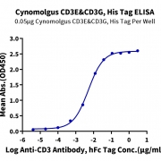 Immobilized Cynomolgus CD3E&CD3G, His Tag at 0.5ug/ml (100ul/Well) on the plate. Dose response curve for Anti-CD3 Antibody, hFc Tag with the EC50 of 5.1ng/ml determined by ELISA. See testing image for detail.