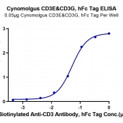 Immobilized Cynomolgus CD3E&CD3G, hFc Tag at 0.5ug/ml (100ul/Well). Dose response curve for Biotinylated Anti-CD3 Antibody, mFc Tag with EC50 of 51.2ng/ml determined by ELISA. See testing image for detail.