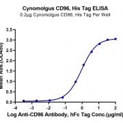 Immobilized Cynomolgus CD96, His Tag at 2ug/ml (100ul/well) on the plate. Dose response curve for Anti-CD96 Antibody, hFc Tag with the EC50 of 0.93ug/ml determined by ELISA. See testing image for detail.
