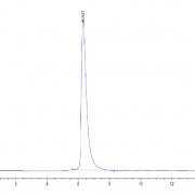 The protein has a predicted MW of 72.76 kDa. Due to glycosylation, the protein migrates to 120-200 kDa based on Tris-Bis PAGE result.
