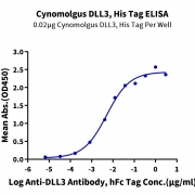 Immobilized Cynomolgus DLL3, His Tag at 0.2ug/ml (100ul/well) on the plate. Dose response curve for Anti-DLL3 Antibody, hFc Tag with the EC50 of 5.0ng/ml determined by ELISA. See testing image for detail.