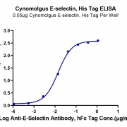 Immobilized Cynomolgus E-selectin, His Tag at 0.5ug/ml (100ul/well) on the plate. Dose response curve for Anti-E-Selectin Antibody, hFc Tag with the EC50 of 14.1ng/ml determined by ELISA. See testing image for detail.