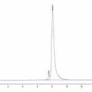 The protein has a predicted MW of 58.56 kDa. Due to glycosylation, the protein migrates to 68-78 kDa based on Tris-Bis PAGE result.