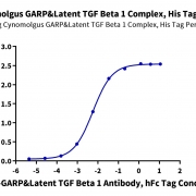 Immobilized Cynomolgus GARP&Latent TGF beta 1 Complex, His Tag at 5ug/ml (100ul/Well) on the plate. Dose response curve for Anti-GARP&Latent TGF Beta 1 Antibody, hFc Tag with the EC50 of 5.7ng/ml determined by ELISA. See testing image for detail.