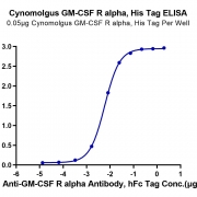Immobilized Cynomolgus GM-CSF R alpha, His Tag at 0.5ug/ml (100ul/well) on the plate. Dose response curve for Anti-GM-CSF R alpha Antibody, hFc Tag with the EC50 of 5.9ng/ml determined by ELISA. See testing image for detail.