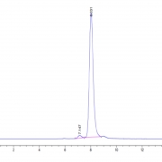 The protein has a predicted MW of 67.47 kDa. Due to glycosylation, the protein migrates to 80-100 kDa based on Tris-Bis PAGE result.