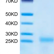 The protein has a predicted MW of 14.01 kDa. Due to glycosylation, the protein migrates to 25-30 kDa based on Tris-Bis PAGE result.