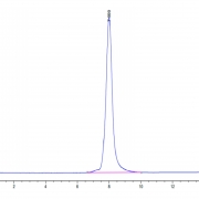 The protein has a predicted MW of 48.28 kDa. Due to glycosylation, the protein migrates to 68-75 kDa based on Tris-Bis PAGE result.