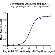 Immobilized Cynomolgus LRG1, His Tag at 5ug/ml (100ul/well) on the plate. Dose response curve for Anti-LRG1 Antibody, hFc Tag with the EC50 of 0.14ug/ml determined by ELISA. See testing image for detail.