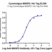 Immobilized Cynomolgus MASP2, His Tag at 1ug/ml (100ul/well) on the plate. Dose response curve for Anti-MASP2 Antibody, hFc Tag with the EC50 of 10.4ng/ml determined by ELISA. See testing image for detail.