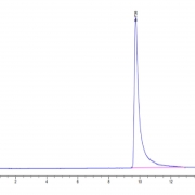 The protein has a predicted MW of 9.79 kDa. Due to glycosylation, the protein migrates to 13-16 kDa based on Tris-Bis PAGE result.