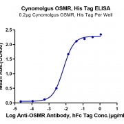 Immobilized Cynomolgus OSMR, His Tag at 2ug/ml (100ul/well) on the plate. Dose response curve for Anti-OSMR Antibody, hFc Tag with the EC50 of 7.1ng/ml determined by ELISA. See testing image for detail.