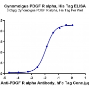 Immobilized Cynomolgus PDGF R alpha, His Tag at 0.5ug/ml (100ul/well) on the plate. Dose response curve for Anti-PDGF R alpha Antibody, hFc Tag with the EC50 of 11.9ng/ml determined by ELISA. See testing image for detail.