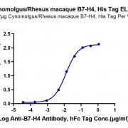 Immobilized Cynomolgus/Rhesus macaque B7-H4, His Tag at 0.2ug/ml (100ul/Well) on the plate. Dose response curve for Anti-B7-H4 Antibody, hFc Tag with the EC50 of 12.8ng/ml determined by ELISA. See testing image for detail.