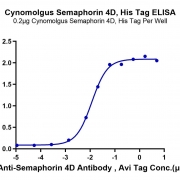 Immobilized Cynomolgus Semaphorin 4D, His Tag at 2ug/ml (100ul/well) on the plate. Dose response curve for Anti-Semaphorin 4D Antibody , hFc Tag with the EC50 of 11.8ng/ml determined by ELISA. See testing image for detail.