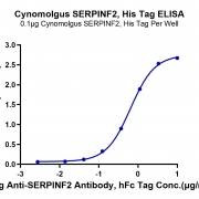 Immobilized Cynomolgus SERPINF2, His Tag at 1ug/ml (100ul/Well) on the plate. Dose response curve for Anti-SERPINF2 Antibody, hFc Tag with the EC50 of 0.64ug/ml determined by ELISA. See testing image for detail.