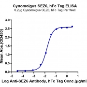 Immobilized Cynomolgus SEZ6, His Tag at 2ug/ml (100ul/Well) on the plate. Dose response curve for Anti-SEZ6 Antibody, hFc Tag with the EC50 of 14.9ng/ml determined by ELISA. See testing image for detail.