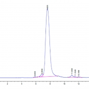 The protein has a predicted MW of 31.55 kDa. Due to glycosylation, the protein migrates to 70-80 kDa based on Tris-Bis PAGE result.