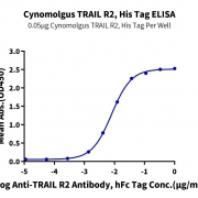 Immobilized Cynomolgus TRAIL R2, His Tag at 0.5ug/ml (100ul/well) on the plate. Dose response curve for Anti-TRAIL R2 Antibody, hFc Tag with the EC50 of 8.0ng/ml determined by ELISA. See testing image for detail.