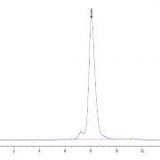 The protein has a predicted MW of 23.76 kDa. Due to glycosylation, the protein migrates to 45-60 kDa based on Tris-Bis PAGE result.