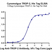 Immobilized Cynomolgus TROP-2 at 0.5ug/ml (100ul/Well). Dose response curve for Anti-TROP-2 Antibody, hFc Tag with the EC50 of 12.1ng/ml determined by ELISA. See testing image for detail.