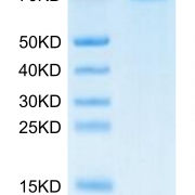 The protein has a predicted MW of 50.1 kDa. Due to glycosylation, the protein migrates to 65-70 kDa based on Tris-Bis PAGE result.