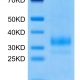 The protein has a predicted MW of 51.8 kDa. Due to glycosylation, the protein migrates to 63-68 kDa based on Tris-Bis PAGE result.