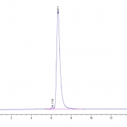 The protein has a predicted MW of 258 kDa. Due to glycosylation, the protein migrates to 260-265 kDa under Non reducing (N) condition based on Tris-Bis PAGE result.
